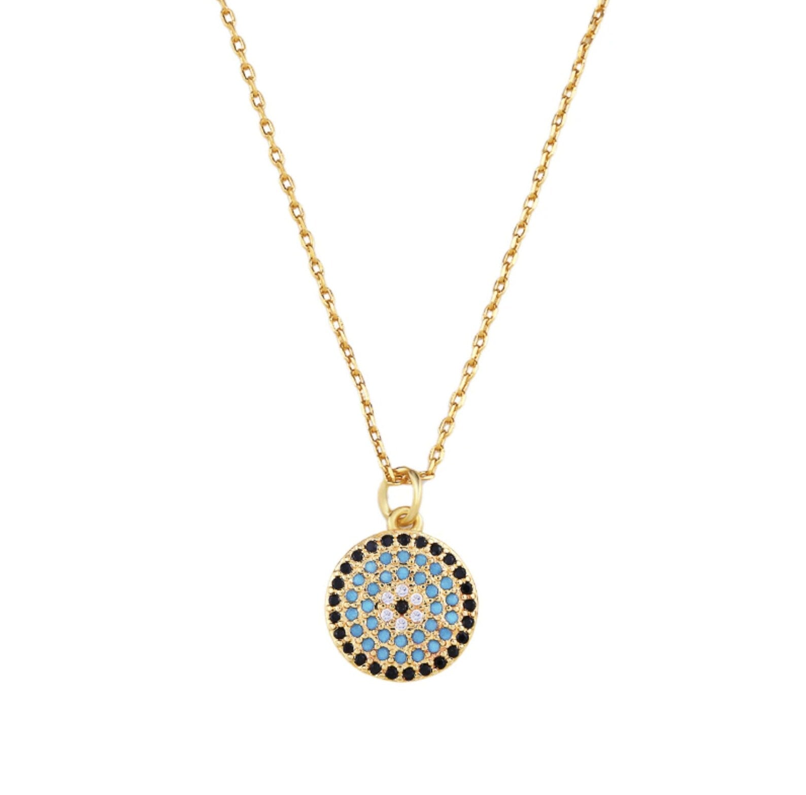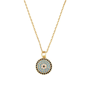 Luxe Time USA .925 Sterling Silver Gold Tone Round Evil Eye Necklace Chain Pendant w/ Ext