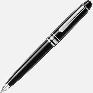 The Meisterstück Homage to W.A. Mozart (small size) in deep black precious resin, with elegant platinum-coated details and surmounted by the white star emblem, evolves into a distinctive design icon.