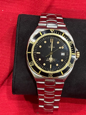 Preowned Omega Seamaster 396.1041 Black Dial Swiss Quartz Date Men's 38mm Watch
