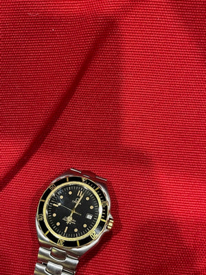Band Material: Stainless Steel Band Type: Bracelet Band Color: Silver Bezel Material: Stainless Steel & 18k Yellow Gold Glass: Sapphire Crystal Country of Origin: Switzerland Water Resistant: 200 Meters / 660 Feet