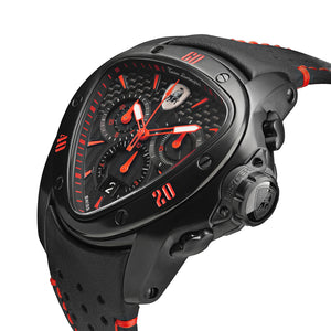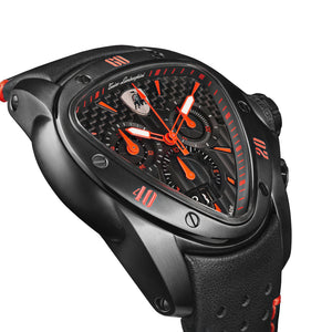 Dial: Carbon fiber and cotes de Geneve with luminous coloured hands and indexes. Tonino Lamborghini shield at 12H, date at 6H.