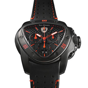 The deployant buckle has the "Tonino Lamborghini" name engraved and logo in relief.